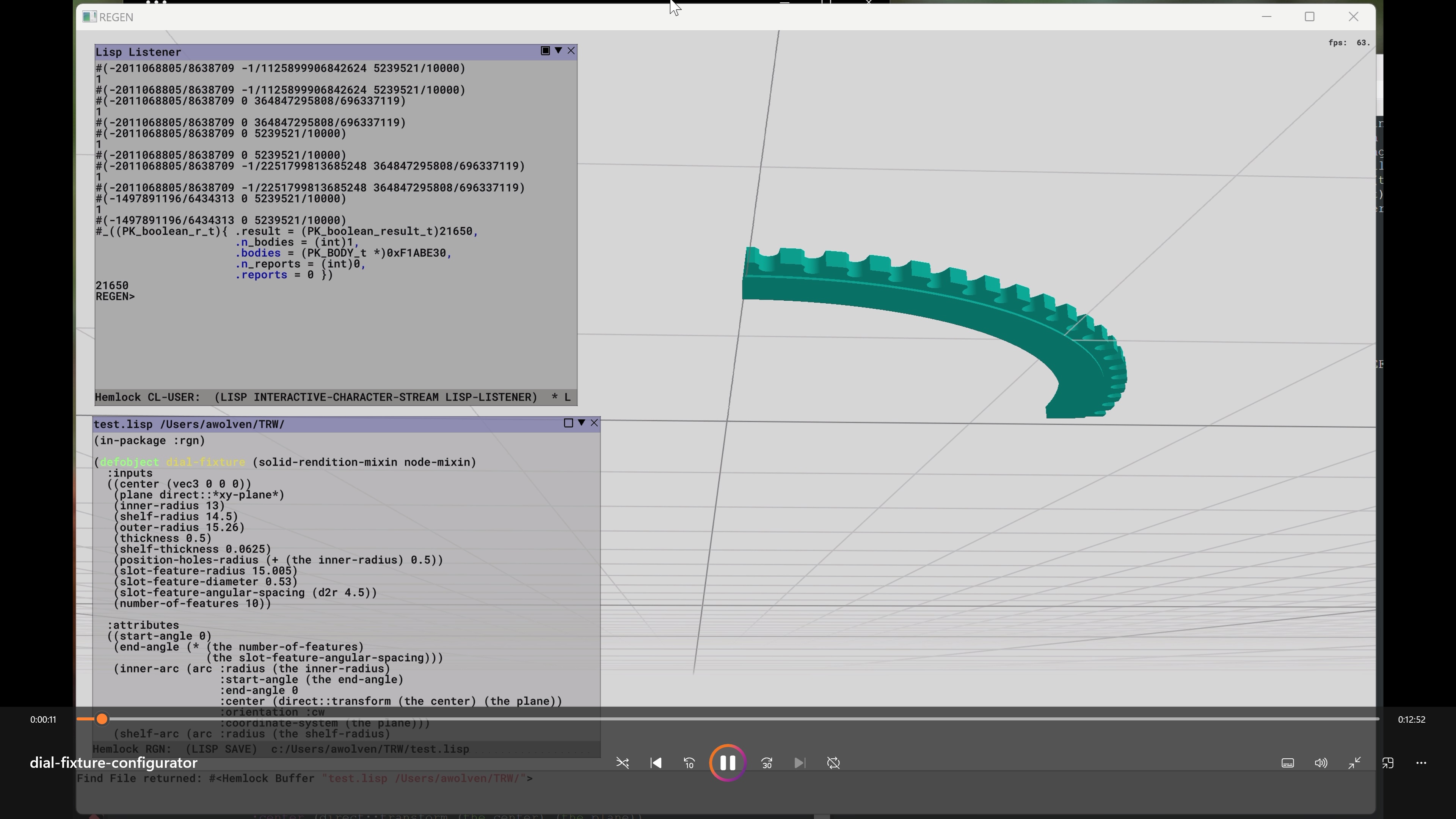 Build generative and non-generative geometry and display it in a 3D universe. Context-menu driven interactive solid modeling environment. Emacs-like code editor and scripting prompt.
